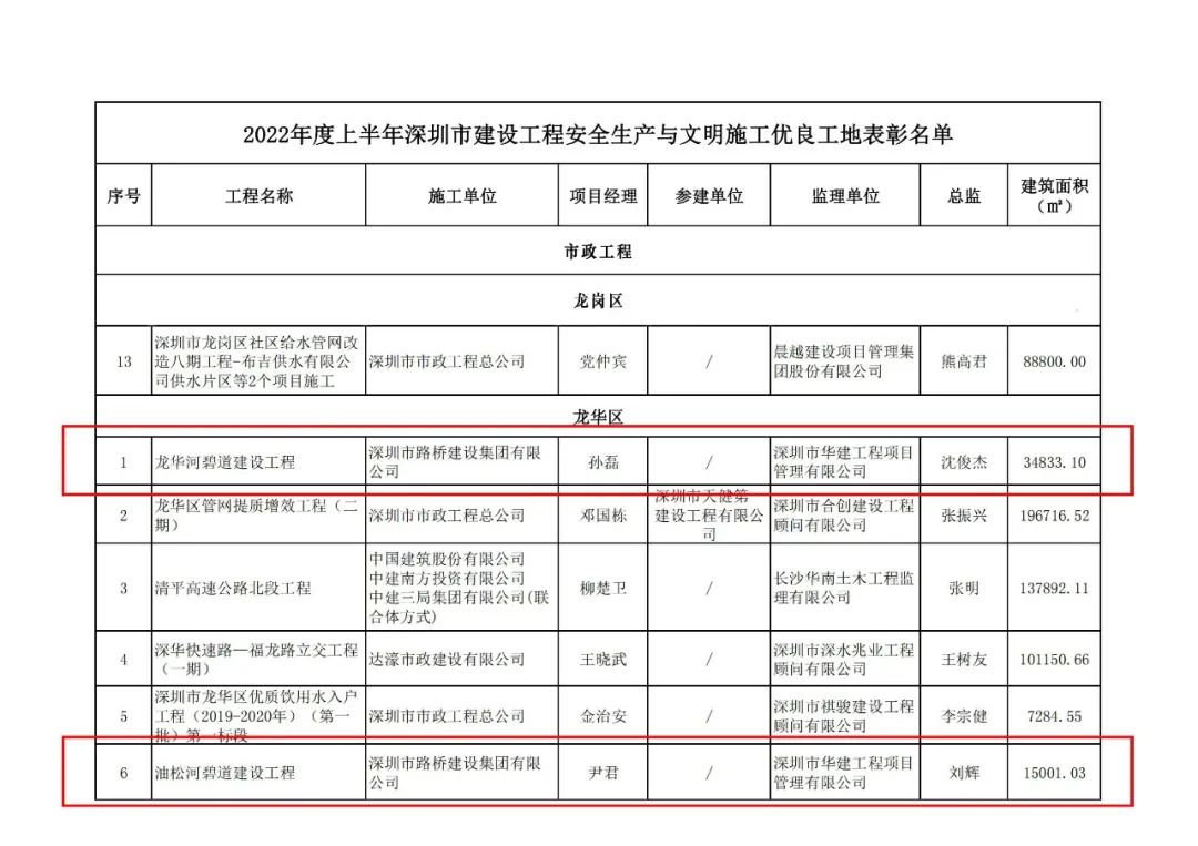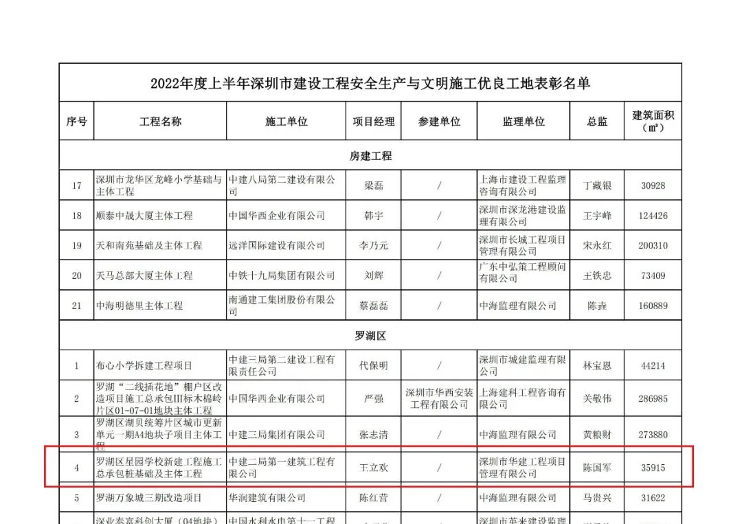 ?近日,從深圳建筑業協會傳來喜訊:華建監理羅湖區星園學校新建工程、龍華河碧道建設工程、油松河碧道建設工程獲評“2022年度上半年深圳市建設工程安全生產與文明施工優良工地”榮譽稱號。