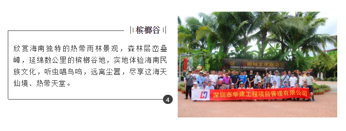 自成立以來,華建上下同心,朝著共同的理想努力奮斗,拼搏奉獻、變革圖強,創造了一個又一個的輝煌。隨著公司的不斷發展,廣大員工也分享著公司紅利,如期開展年度企業文化項目——海南游活動。