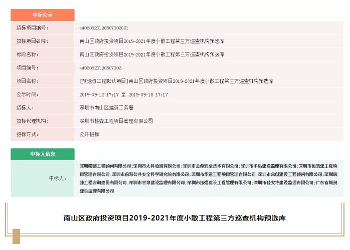 ⊙南山區政府投資項目2019-2021年度小散工程第三方巡查機構預選庫