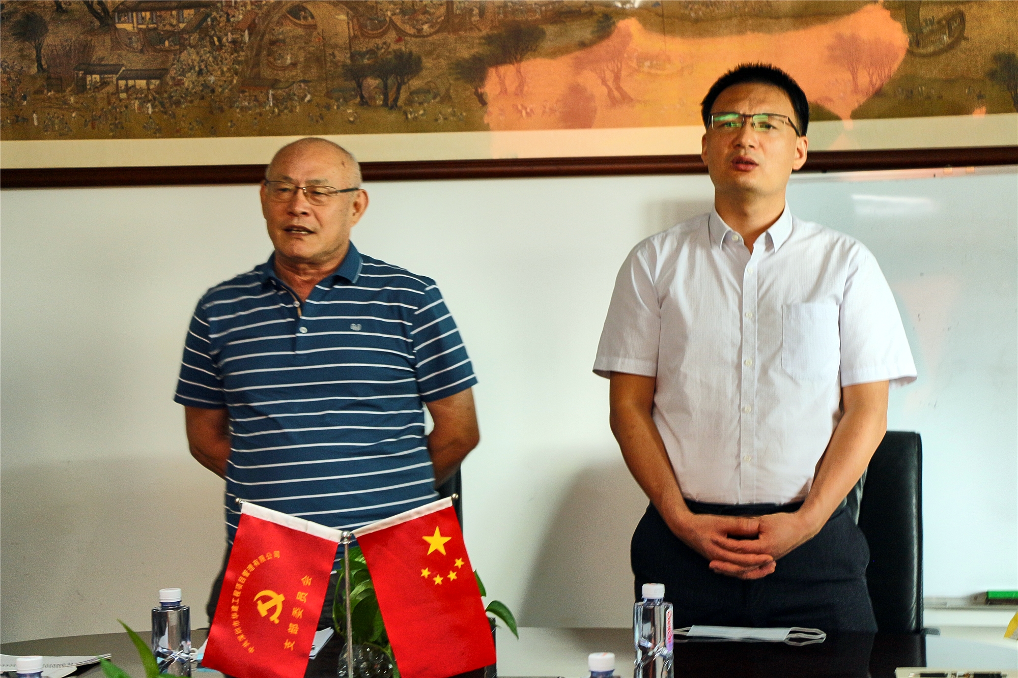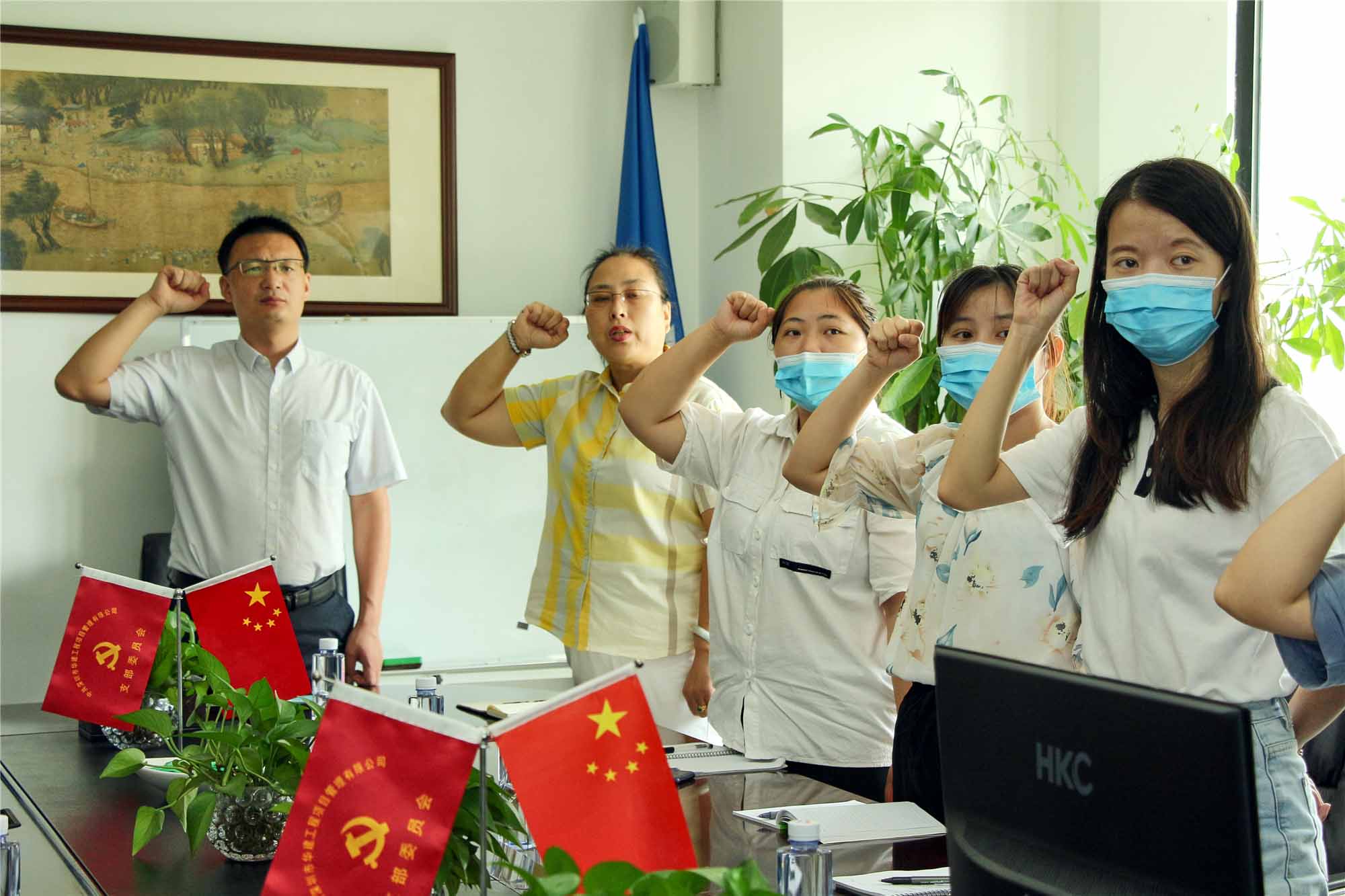 會(huì)議在雄壯的國(guó)歌中拉開(kāi)序幕,與會(huì)全體黨員起立唱國(guó)歌,寄托對(duì)祖國(guó)的深情和敬意。奮斗九十九載,輝煌九十九載,在每個(gè)關(guān)鍵時(shí)刻,每次緊要關(guān)頭,我們偉大的中國(guó)共產(chǎn)黨,帶領(lǐng)人民,不斷開(kāi)拓創(chuàng)新,勇攀高峰,寫(xiě)下了彪炳千秋的歷史偉績(jī)。今日,在鮮紅黨旗的引領(lǐng)下,華建人以紅心,敬黨心!